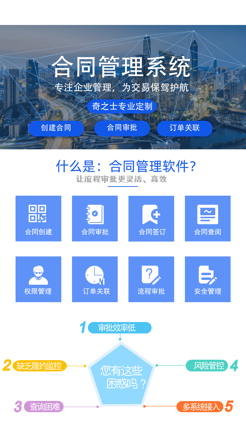 2)合同審批:根據(jù)企業(yè)的業(yè)務自定義合同審批 流程,保存所有的審批意見,幫助評審人員參考;
