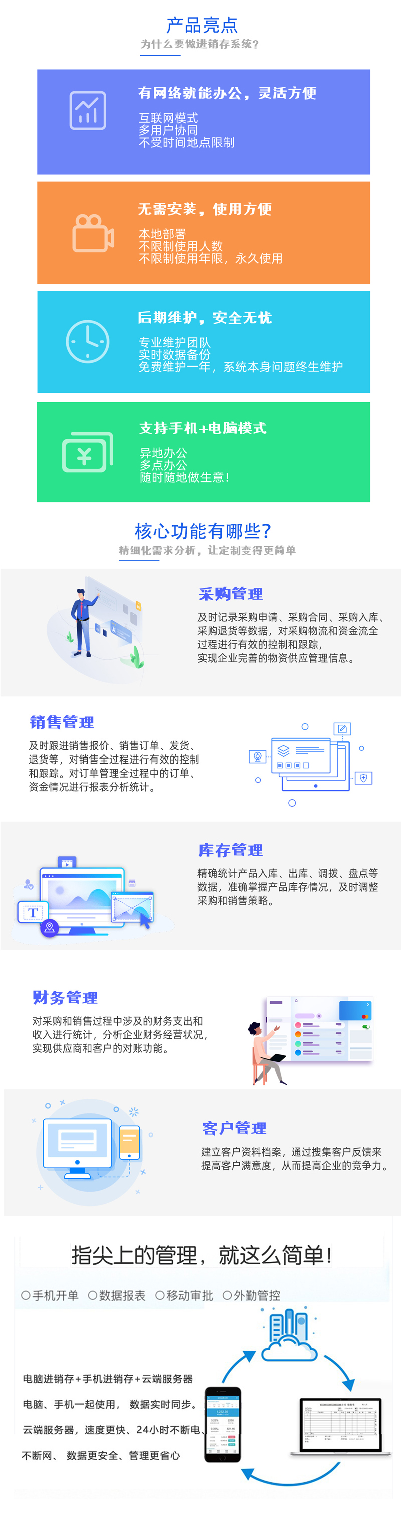 4、 手機電腦,隨時使用,輕松實現異地協同,多點辦公,智能分析業務數據。